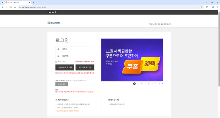부산교육청 베네피아 홈페이지 (https://pen.benepia.co.kr)